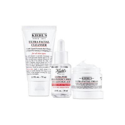 ULTRA FACIAL CREAM 28 ML AQUA / WATER,GLYCERIN,DIMETHICONE,SQUALANE,BIS-PEG-18 METHYL ETHER DIMETHYL SILANE,SUCROSE STEARATE,STEARYL ALCOHOL,PEG-8 STEARATE,MYRISTYL MYRISTATE,PRUNUS ARMENIACA KERNEL OIL / APRICOT KERNEL OIL,PHENOXYETHANOL,PERSEA GRATISSIMA OIL / AVOCADO OIL,GLYCERYL STEARATE,CETYL ALCOHOL,ORYZA SATIVA BRAN OIL / RICE BRAN OIL,OLEA EUROPAEA FRUIT OIL / OLIVE FRUIT OIL,CHLORPHENESIN,STEARIC ACID,PALMITIC ACID,CARBOMER,ACRYLATES/C10-30 ALKYL ACRYLATE CROSSPOLYMER,TRISODIUM ETHYLENEDIAMINE DISUCCINATE,PRUNUS AMYGDALUS DULCIS OIL / SWEET ALMOND OIL,XANTHAN GUM,ETHYLHEXYLGLYCERIN,SODIUM HYDROXIDE,TOCOPHEROL,GLYCINE SOJA OIL / SOYBEAN OIL,PSEUDOALTEROMONAS FERMENT EXTRACT,MYRISTIC ACID,HYDROXYPALMITOYL SPHINGANINE,SALICYLIC ACID,HELIANTHUS ANNUUS SEED OIL / SUNFLOWER SEED OIL,ROSMARINUS OFFICINALIS LEAF EXTRACT / ROSEMARY LEAF EXTRACT,CITRIC ACID PURE SERUM GLYCOLIC ACID 30ML Aqua/Water, Glycolic Acid, Glycerin, Alcohol Denat., Sodium Hydroxide, Sodium Hyaluronate, Hydroxyethylcellulose Ultra Facial CLEANSER 75ML Aqua/Water, Sodium Laureth Sulfate, Decyl Glucoside, Glycerin, Cocamidopropyl Betaine, Disodium Cocoamphodiacetate, Acrylates Copolymer, Lauryl Glucoside, PEG-200 Hydrogenated Glyceryl Palmate, Triethanolamine, Sodium Chloride, Pentylene Glycol, Phenoxyethanol, PEG-7 Glyceryl Cocoate, Sodium Hydroxide, Citric Acid, Hexylene Glycol, Behenyl Alcohol, Distearyl Ether, Sodium Benzoate, Laureth-2, Squalane, Prunus Amygdalus Dulcis Oil/Sweet Almond Oil, Prunus ArmeniacaKernel Oil/Apricot Kernel Oil, Tocopherol, Ascorbyl Glucoside, Persea Gratissima Oil/Avocado Oil.